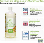 - Duurzaam Geproduceerd: Bio-ethanol vervaardigd in Europa volgens ethische normen en strenge kwaliteitscontrole, met TÜV- en ISO 9001-certificering.