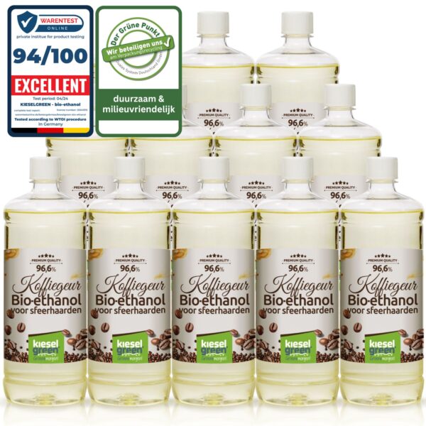KieselGreen 12 Liter Bio-Ethanol met Koffie Aroma – Premium Bio-ethanol 96.6% Zuiverheid voor Binnen en Buiten