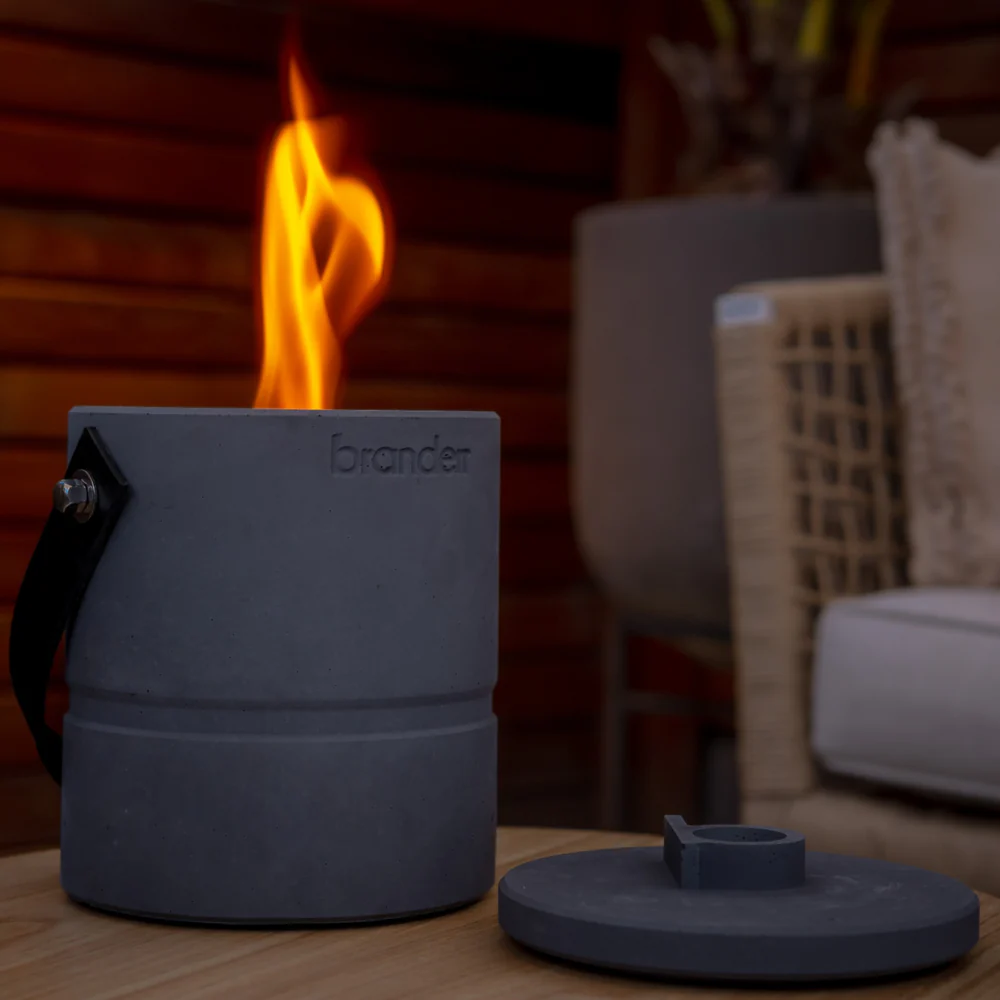 De Branderr Luno in de kleur zwart antraciet is een moderne en robuuste bio-ethanol tafelhaard die direct sfeer toevoegt aan elke ruimte. Of je nu een gezellige avond binnen plant of een stijlvolle buitenbeleving wilt creëren, deze handgemaakte haard is het perfecte middelpunt. Gemaakt van massief beton met een elegante antracietzwarte afwerking en een praktische leren draaglus – design en comfort in één.