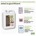 - Hoogwaardige bio-ethanol: Een zuiverheid van 96,6% garandeert een efficiënte en veilige verbranding.