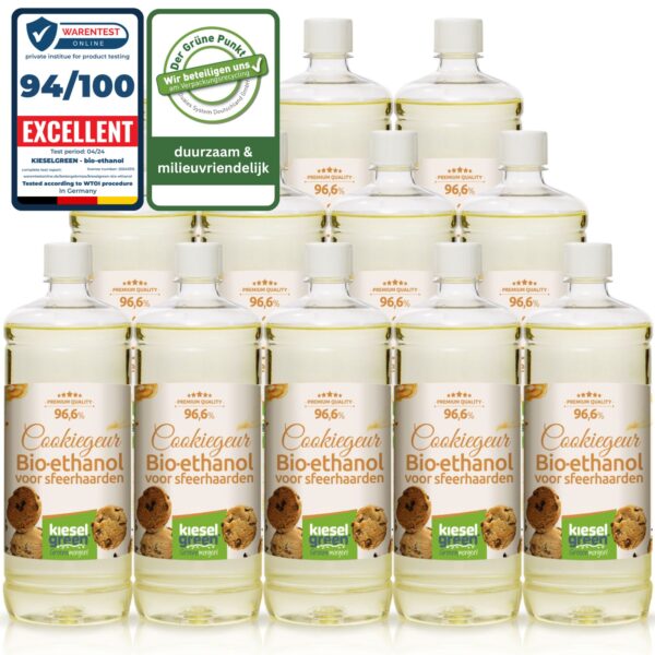KieselGreen 12 Liter Bio-Ethanol met Cookie Aroma – Premium Bio-ethanol 96.6% Zuiverheid voor Binnen en Buiten